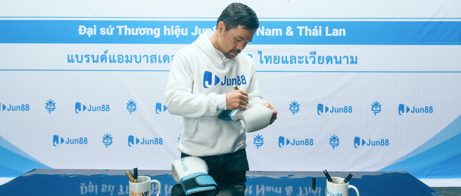 ปาเกียว (แมนนี่ ปาเกียว) - นักมวยชื่อดังและแบรนด์แอมบาสเดอร์ Jun88 ในวงการกีฬาชกมวย ไม่เพียงแต่ต้องใช้ความสามารถและความทุ่มเทเพื่อคว้าเข็มขัดแชมป์เท่านั้น แต่ยังต้องสร้างแบรนด์ส่วนตัวให้แข็งแกร่งขึ้นด้วย ซึ่งปาเกียวได้พิสูจน์ให้เห็นแล้วว่าเขาเหมาะสมที่จะเป็นแบรนด์แอมบาสเดอร์ของ Jun88 แบรนด์ชั้นนำในวงการพนันออนไลน์และความบันเทิง